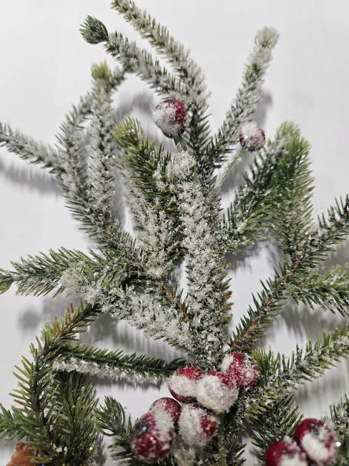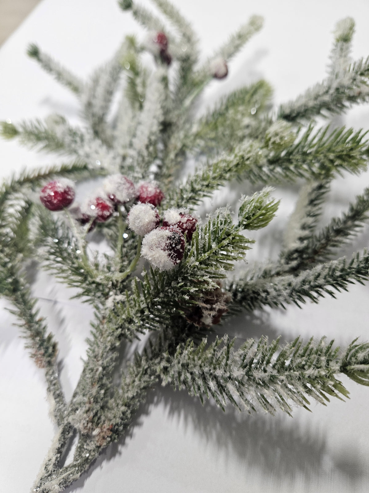 Ramo di pino innevato con bacche 38 cm