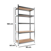 Lo scaffale misura 90 x 40 x 180 cm, quindi ha una buona capacità senza occupare troppo spazio. La profondità di 40 cm è ideale per contenitori, scatole e utensili senza “rubare” troppa superficie calpestabile.