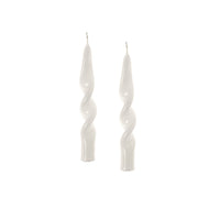 Aggiungi un tocco di eleganza e luminosità ai tuoi ambienti con questo raffinato set da 2 candele bianche lucide dalla forma a fiamma intrecciata. Realizzate con una finitura brillante e un design curvato decorativo, queste candele sono perfette per impreziosire tavole imbandite, centrotavola, composizioni natalizie e angoli della casa durante le festività.