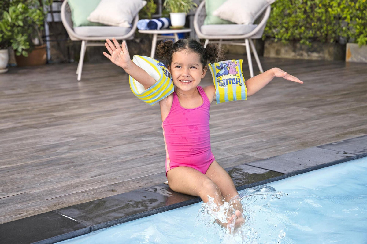 I braccioli gonfiabili Stitch sono pensati per accompagnare i bambini nelle prime esperienze in acqua. Offrono supporto durante il gioco e l’apprendimento del nuoto, permettendo ai piccoli di muovere liberamente le braccia mentre sviluppano coordinazione e sicurezza.