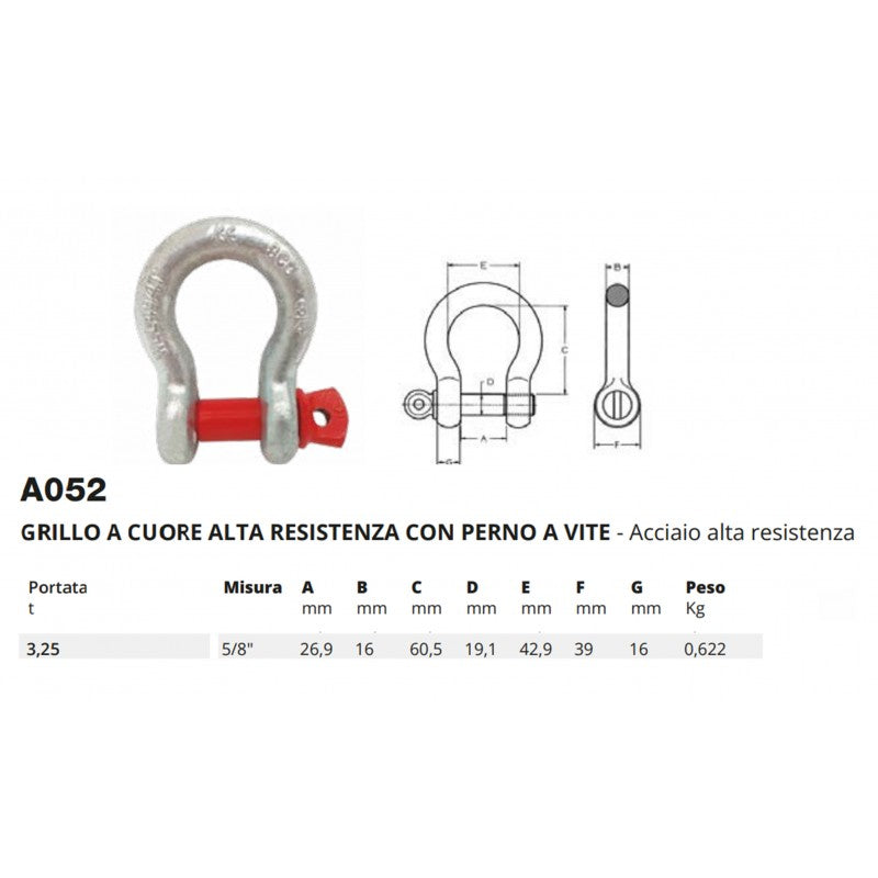 Grillo A Cuore Alta Resistenza T 3,25 Con Perno A Vite