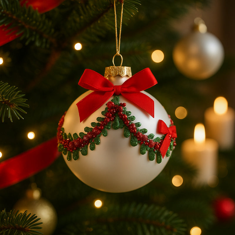 Palla in Vetro con Festoni Diametro 10 cm|EDG