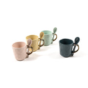 Rendi speciale ogni pausa con questa deliziosa tazzina in ceramica da 90 ml completa di cucchiaino abbinato, comodamente inserito nel manico. Il design moderno e colorato la rende perfetta per aggiungere un tocco di stile alla tua tavola, per uso quotidiano o per servire il caffè agli ospiti.