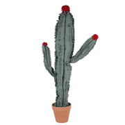 Cactus Decorativo Verde con Fiori Rossi – 47×100 cm in Poliestere e Terracotta