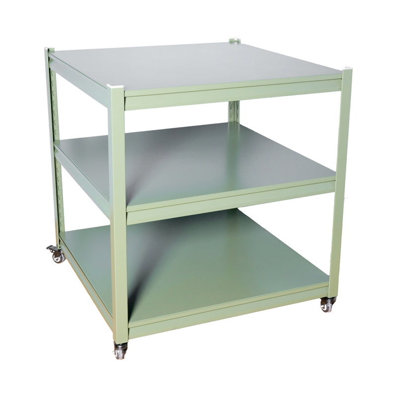 Dotato di 3 ampi ripiani e di 4 ruote pivotanti, permette una movimentazione facile e sicura, mantenendo elevata stabilità.