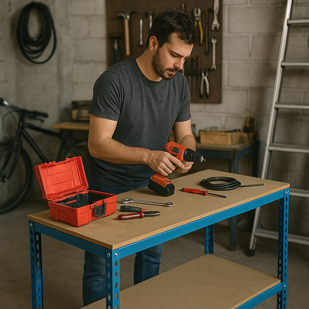 La struttura in acciaio e MDF garantisce un’ottima capacità di carico su entrambi i ripiani, rendendolo adatto a lavori di fai-da-te, officina o uso professionale leggero.