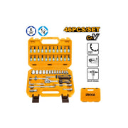 Set professionale da 42 pezzi con attacco 1/4", realizzato in acciaio Cr-V 50BV30 trattato termicamente e cromato per garantire massima resistenza e lunga durata.