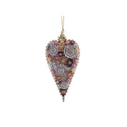 Pendente di natale a cuore con corona h 13,5cm decorato a mano