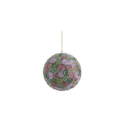 Pendente sfera verde e rosa decorata a mano - 12 cm
