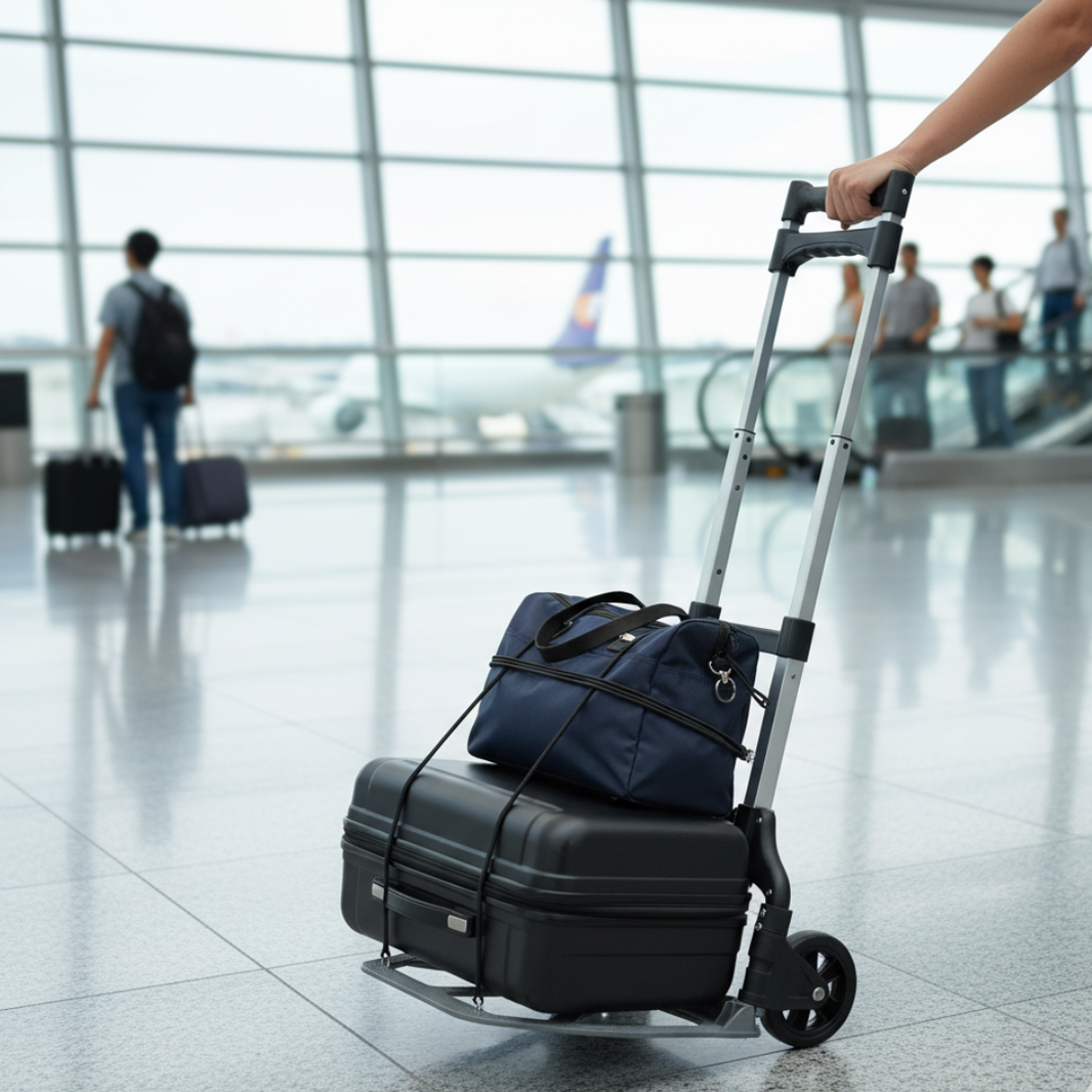Il Carrello Smart Portapacchi Telescopico e Pieghevole è la soluzione ideale per alleggerire il carico in ogni situazione, dall'ufficio ai viaggi. Progettato per l'efficienza, vanta una struttura leggera ma resistente grazie al telaio telescopico in alluminio e componenti in plastica ad alta resistenza.