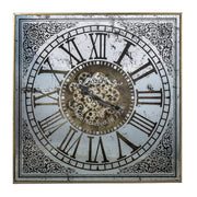 Questo elegante orologio da parete in MDF presenta un design ricercato con numeri romani, ingranaggi decorativi centrali e una finitura anticata, ideale per aggiungere carattere a qualsiasi ambiente.