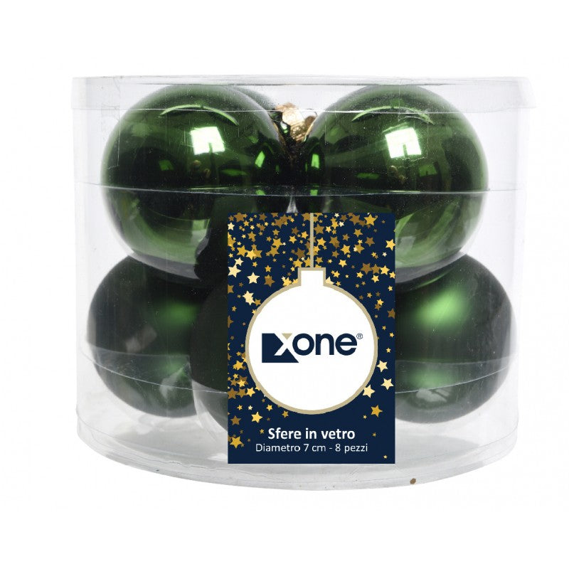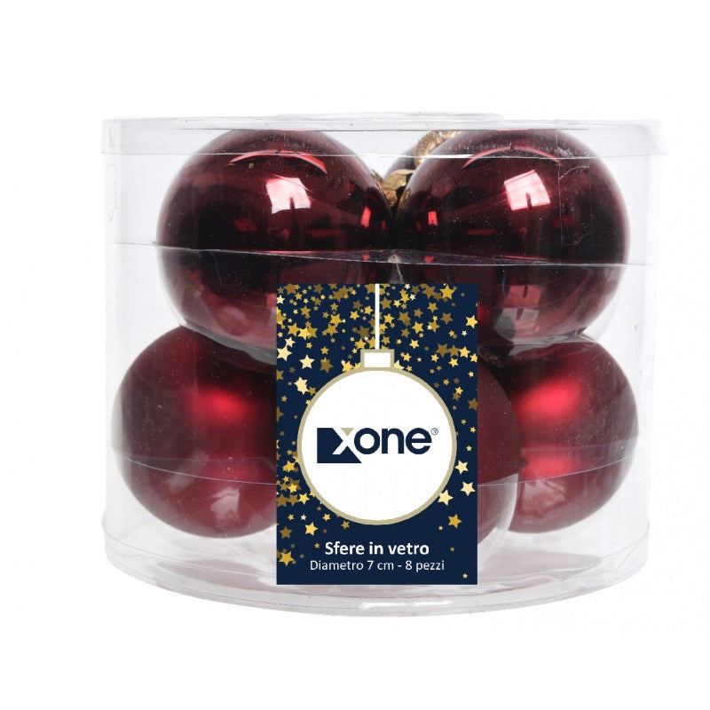 Set 8 Palle di Natale in vetro vari colori 7 cm