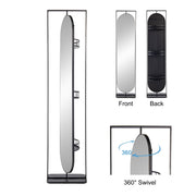 Specchiera rotante a 360° con struttura in metallo nero e ripiani posteriori