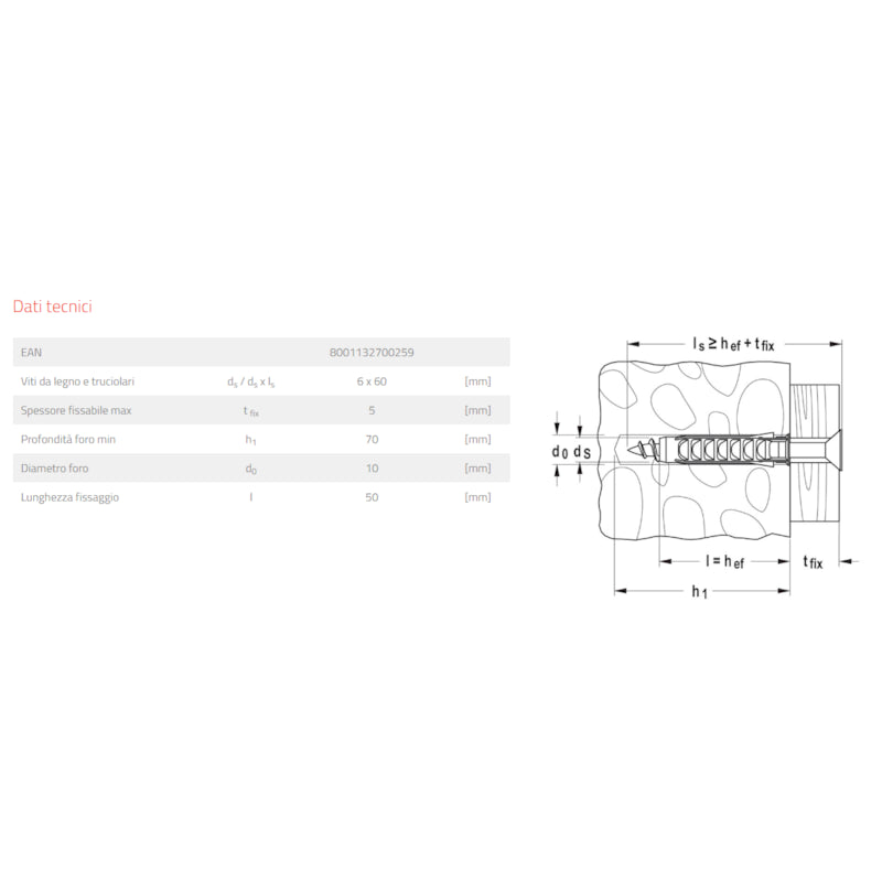 Tassello Fischer in nylon con vite Sx10s